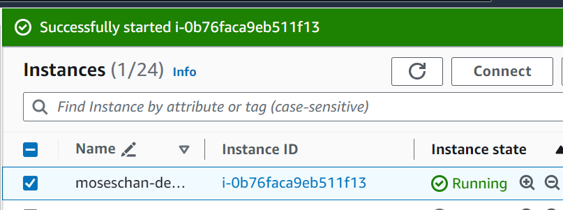 - Start your EC2 instance from https://nu-sso.awsapps.com/start/. (The one you have a private key for.)