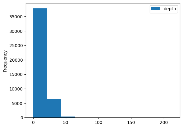 earthquake = earthquake.sample(n=500) # (if too slow) for illustration purposes# histogram for continuous variables using pandas built-in plots