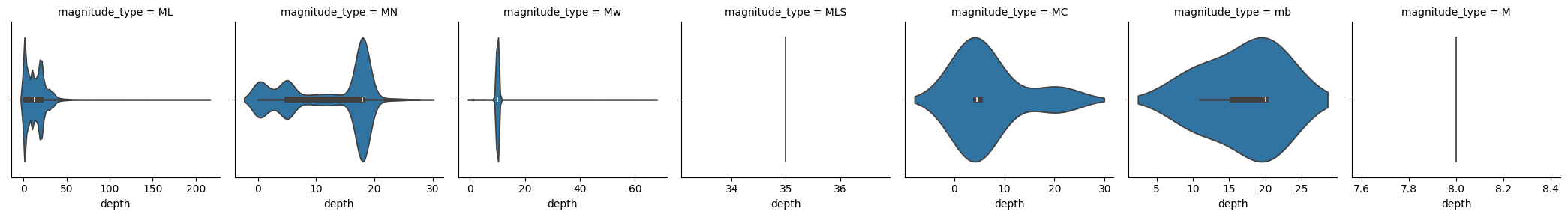 g = sns.FacetGrid(earthquake, col='magnitude_type', sharex=False)